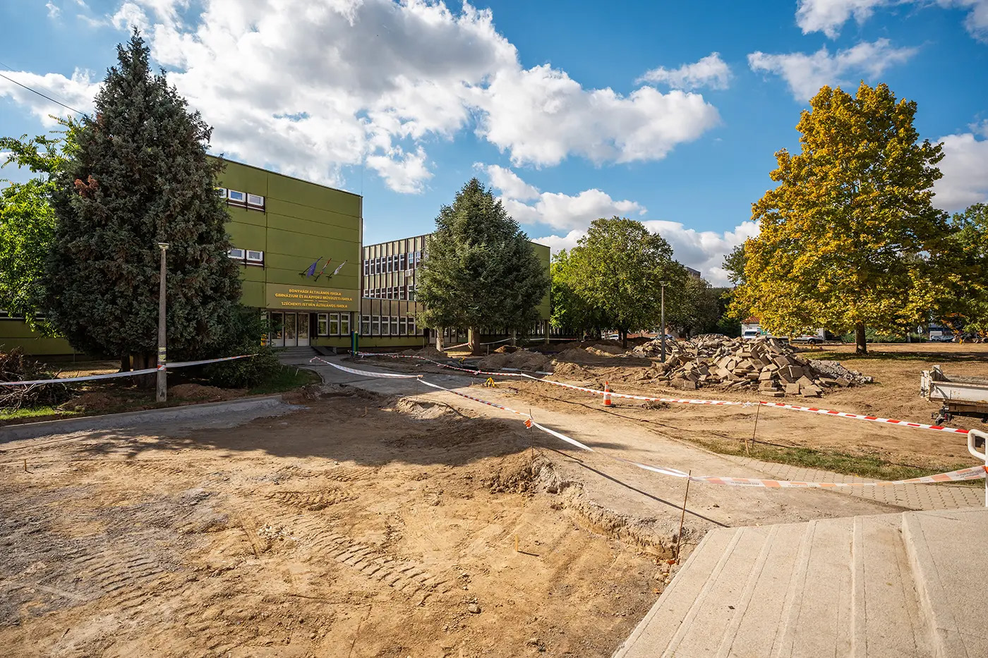 - A Bonyhádi Általános Iskola, Gimnázium és Alapfokú Művészeti Iskola, Széchenyi István Iskola előtti központi nagy zöldterületre többfunkciós, és több korosztály számára élményt jelentő játszótér, pihenőpark készül. A családbarát fejlesztési elemként kerül kialakításra 3 játszótér (egy kisebb korosztály számára, egy nagyobb korosztály számára, valamint egy integrált játszótér), valamint megújításra kerül a röplabda pálya, illetve a projektben új kültéri fitnesz park létesítése történik meg. A tervek köött szerepel egy nyilvános WC kihelyezése is.